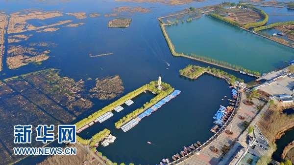 俯瞰河北省安新县境内的白洋淀(3月31日摄)。新华社记者 杨世尧 摄