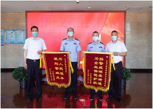 培训中心主任孔德明代表mksports官方网站-mk(中国)一站式服务官方网站向怀柔分局雁栖经济开发区派出所所长和怀柔分局刑侦支队支队长送上锦旗,代表公司感谢人民警察服务企业生产建设、守护一方平安付出的艰辛努力,感谢怀柔分局雁栖开发区派出所和怀柔分局刑侦支队急企业所急、想人民所想,在企业遇到困难时及时出警,有力保障了企业财产安全,维护了社会良好秩序,为企业发展创造了平安和谐的营商环境。