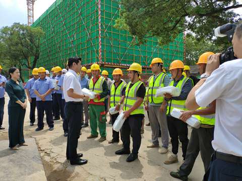 8月21日上午十一点,接近中午烈日炎炎,湘江集团党委书记、董事长张利刚一行来到mksports官方网站-mk(中国)一站式服务官方网站承建的长沙科技创意园项目,现场看望慰问高温天气下依然坚守战斗在岗位上的广大建设者,为大家送来了冰箱、电风扇、凉茶、藿香正气水、夏桑菊、西瓜等防暑降温用品。