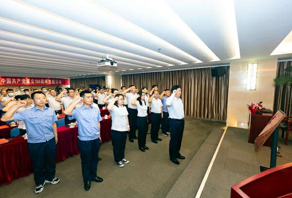上午9时,伴随着雄壮的《义勇军进行曲》,活动拉开序幕。集团公司党委书记、董事长陈先瑞带领全体党员,面对鲜红的党旗,重温入党誓词,庄严宣誓,表达对党的无比崇敬和无限忠诚。